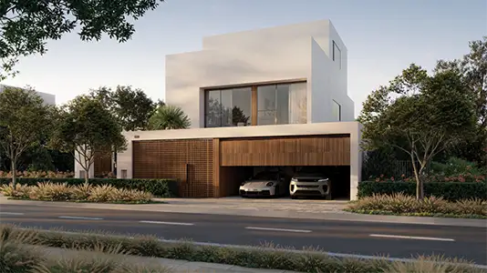 Each villa is a masterpiece of architectural balance, blending minimal forms with delicately textured curves inspired by the grace of polo horses. Spacious layouts, polished marble floors, and floor-to-ceiling windows flood the interiors with natural light, while private courtyards and large terraces seamlessly connect indoor and outdoor living. The villas are designed to offer both privacy and openness, with careful attention to detail evident in every finish and fixture.
