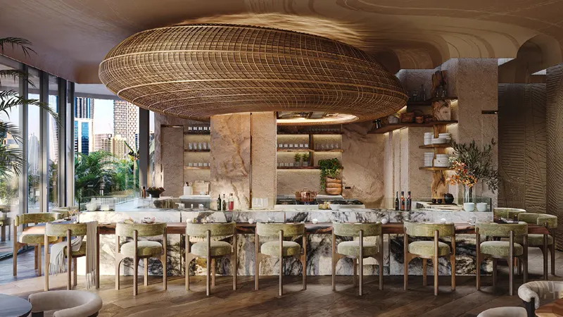 Residents enjoy thoughtfully curated amenities including a chef’s table, pools, a state-of-the-art gym, spa, indoor and outdoor cinemas, a library, and crystal gardens. Expansive terraces feature private waterfalls, pools, and lush greenery, creating a serene environment that celebrates nature while fostering community and personal reflection.