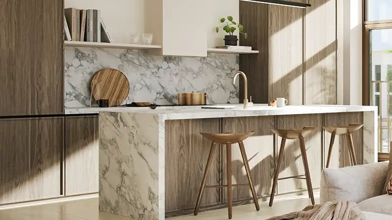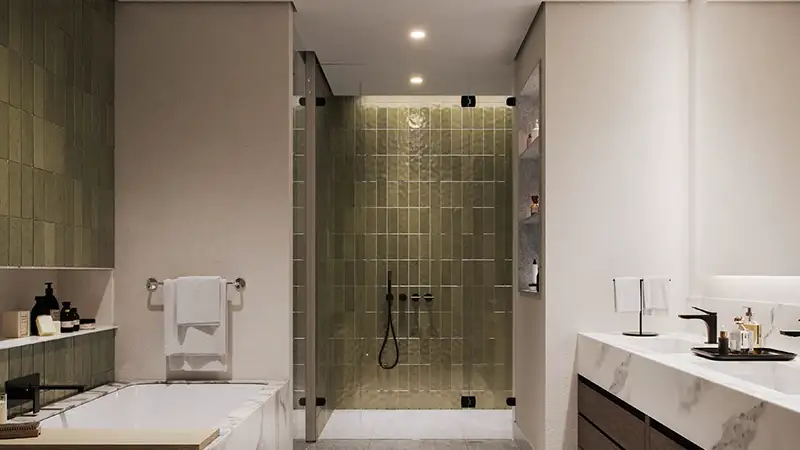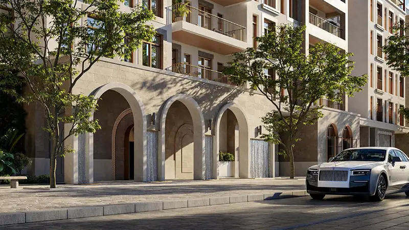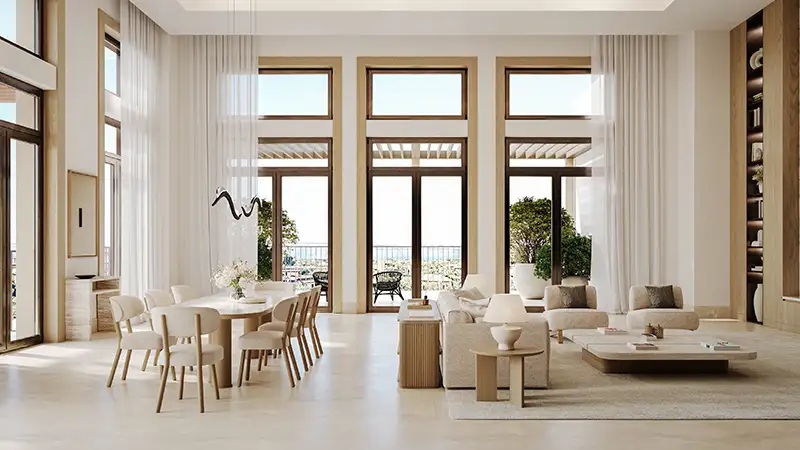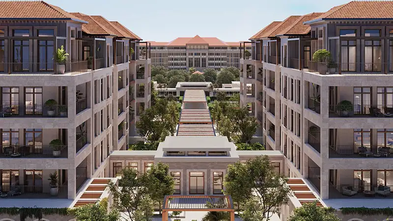 Inspired by the charm of a Mediterranean seaside town, the architecture features soft arches, airy terraces, and a soothing sandy beige color palette. Natural materials like textured stone, artisanal plaster, and wood accents create a warm, organic aesthetic that balances modern minimalism with timeless elegance.